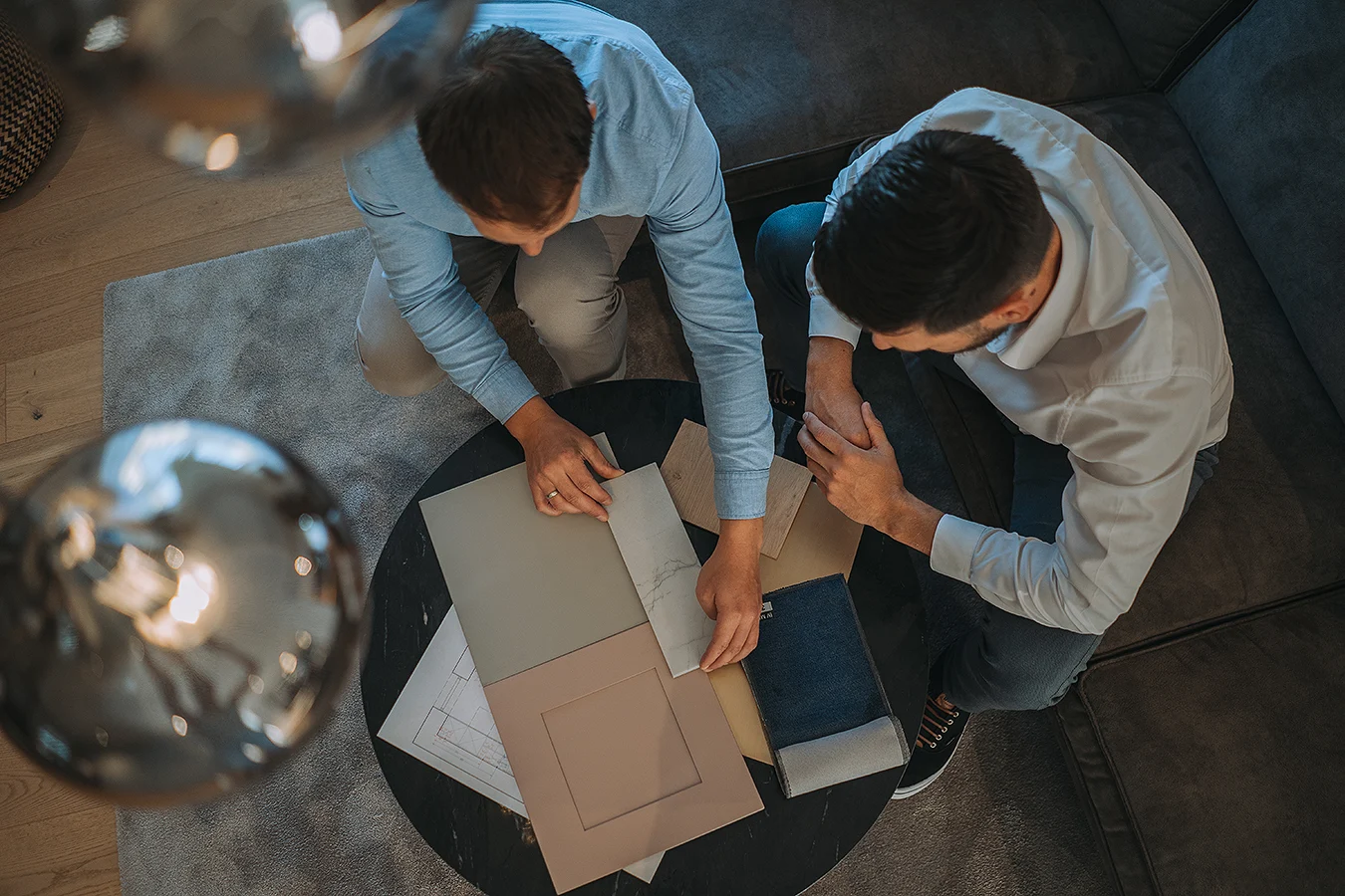 Wir gestalten Wohnräume mit Charakter. Keine Kopien, keine Kompromisse. Materialien geben den Ton an. Wir hören hin, was sie erzählen – und lassen sie mitspielen, nicht bloß mitlaufen. Mit viel Kreativität, Erfahrung und einem feinen Gespür für Funktion, Ästhetik und Atmosphäre schaffen wir Räume, die so viel mehr sind als nur ein Pinterest-Pin!